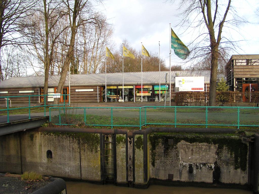 | In het Mobilion voorlichtingscentrum is een maquette van de nieuwe A2 tussen Kp's Holendrecht en Oudenrijn te zien. Het was echter gesloten, en zal dat gezien de teksten op het raam binnenkort definitief zijn. Op de voorgrond het riviertje de Leidsche Rijn. |