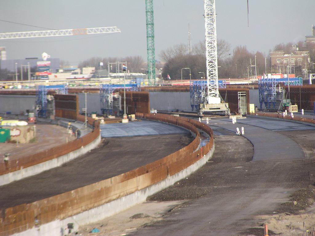 Aan alle vijf de muren wordt gelijktijdig gewerkt.