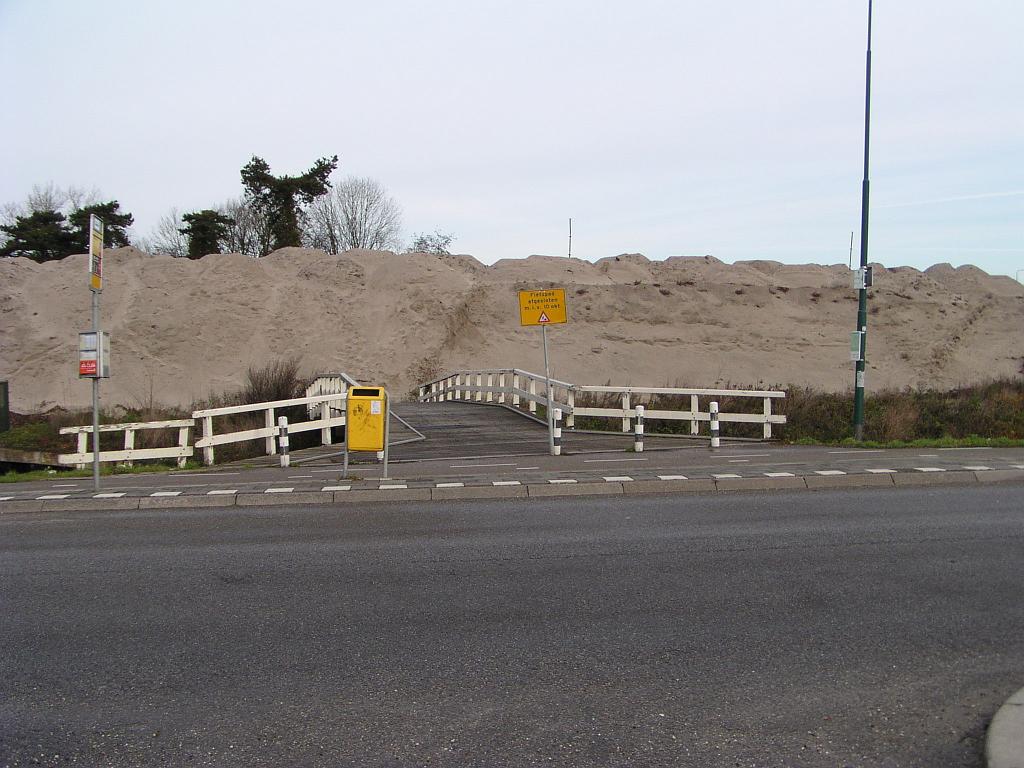 | Zandlichaam ten behoeve van de viaducten over het riviertje de Leidsche Rijn. De voormalige fietsbrug biedt nu toegang tot de werkvakken voor hondenuitlaters en snelwegfotografen. |