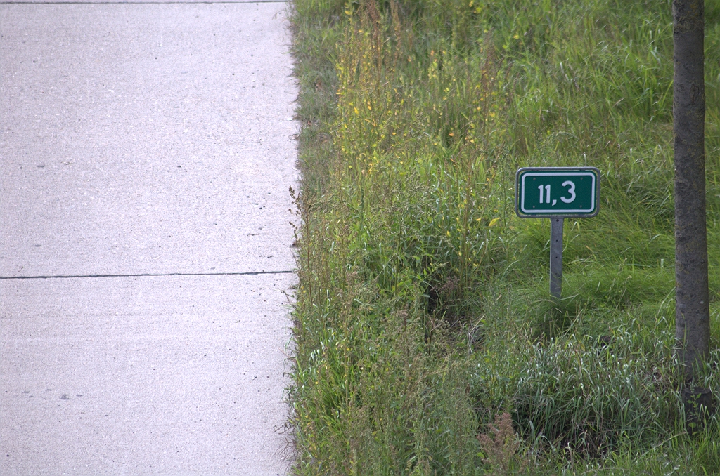 | Ander type hectometerbordjes op Helmonds grondgebied, die inderdaad ook op elke 100 meter staan, in tegenstelling tot de "N-weg" type schilden in Nuenen per kilometer. De kilometrering is overigens niet de originele. Op de topografische kaart van 1984 zien we het A270 nulpunt op de merkwaardige plaats van de gemeentegrens tussen Eindhoven en Nuenen liggen. Kilometergetal op dit punt was destijds dan ongeveer 5,5. Virtuele nulpunt ligt met de huidige kilometrering op de Fellenoord in Eindhoven-centrum. | |