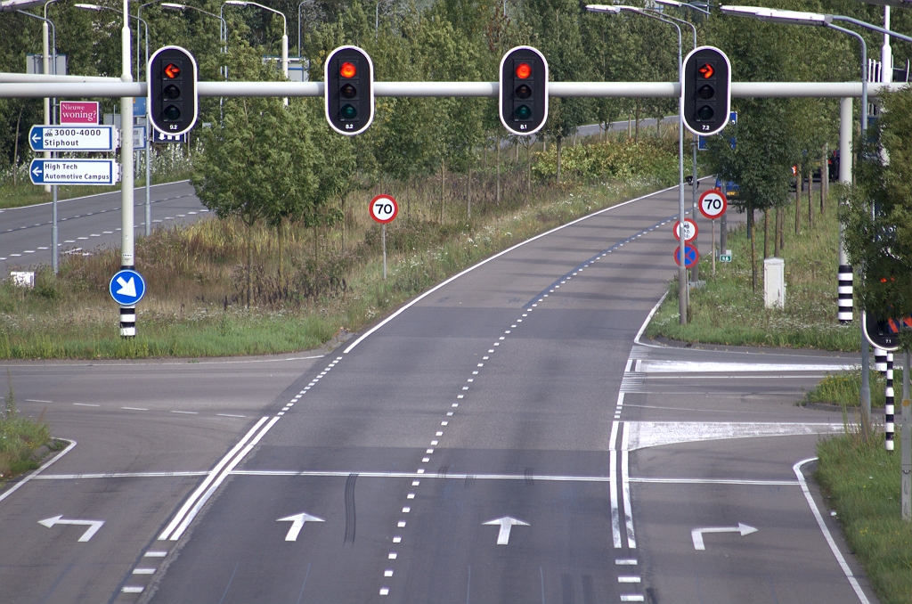 Vmax 70 op het afgewaardeerde wegvak tussen de Brandevoortsedreef en de Mierloseweg (lengte ongeveer 1,5 km), maar een ervaringsdeskundige meldt dat het destijds van 120 naar 50 km/uur is gegaan op dat stukje.