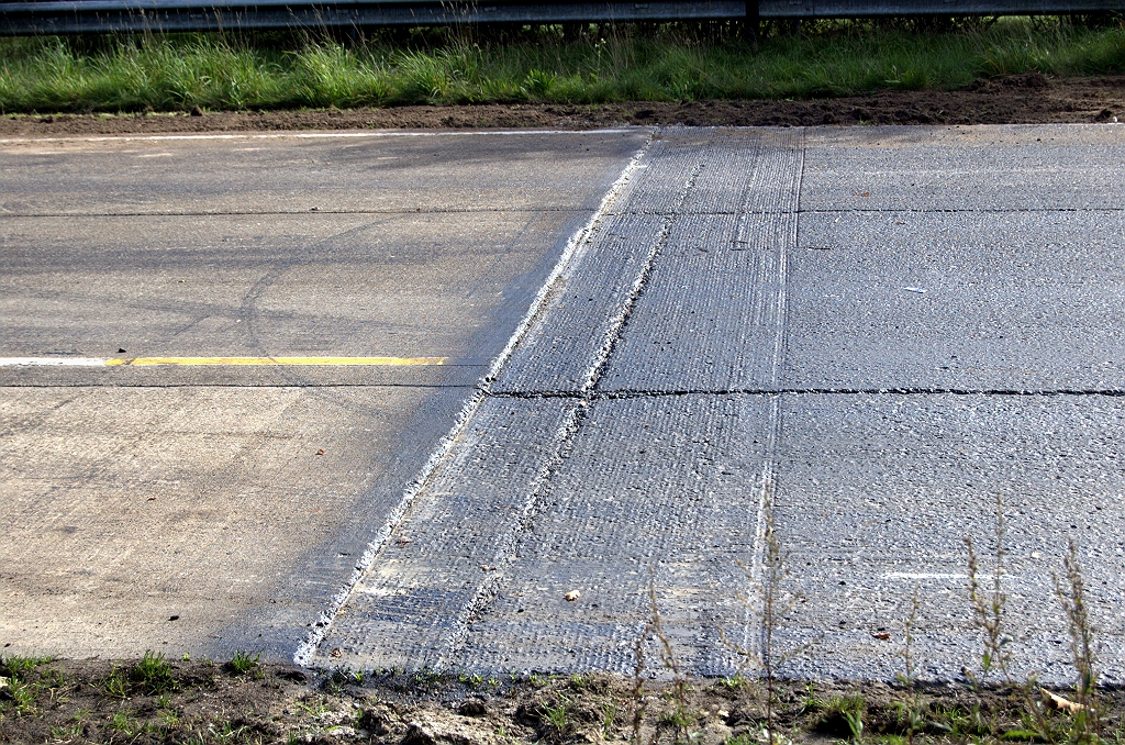 Weggefreesd beton ten behoeve van de aansluiting met de toplaag.