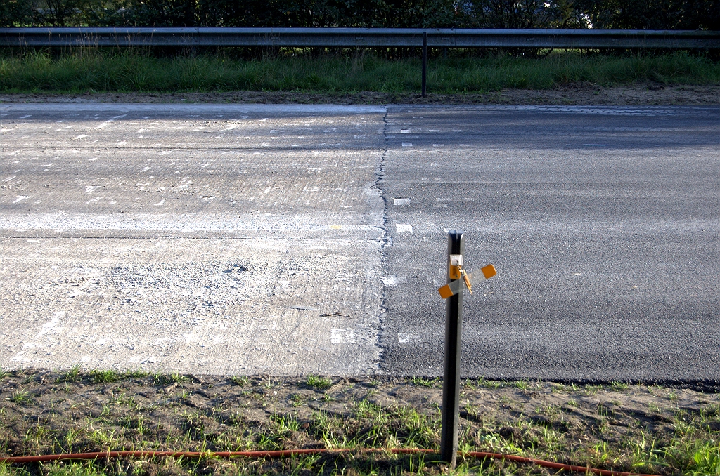 Het is duidelijk dat het beton (en een stukje nieuw asfalt) met zware middelen is toegetakeld.