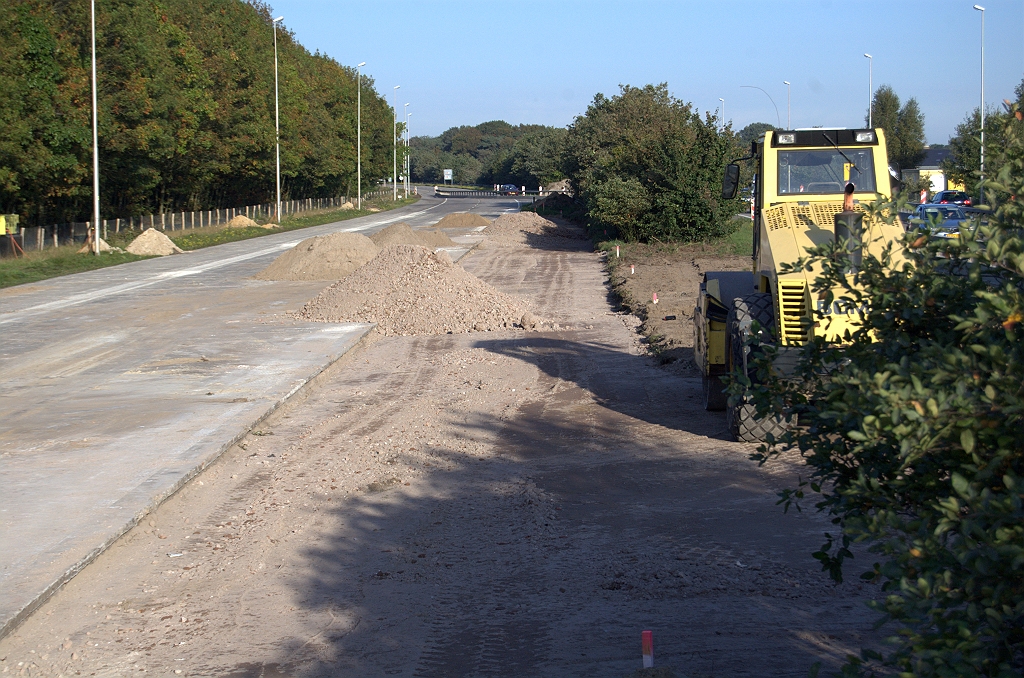 ...zodat de doorgaande rijbaan niet verlegd hoeft te worden.