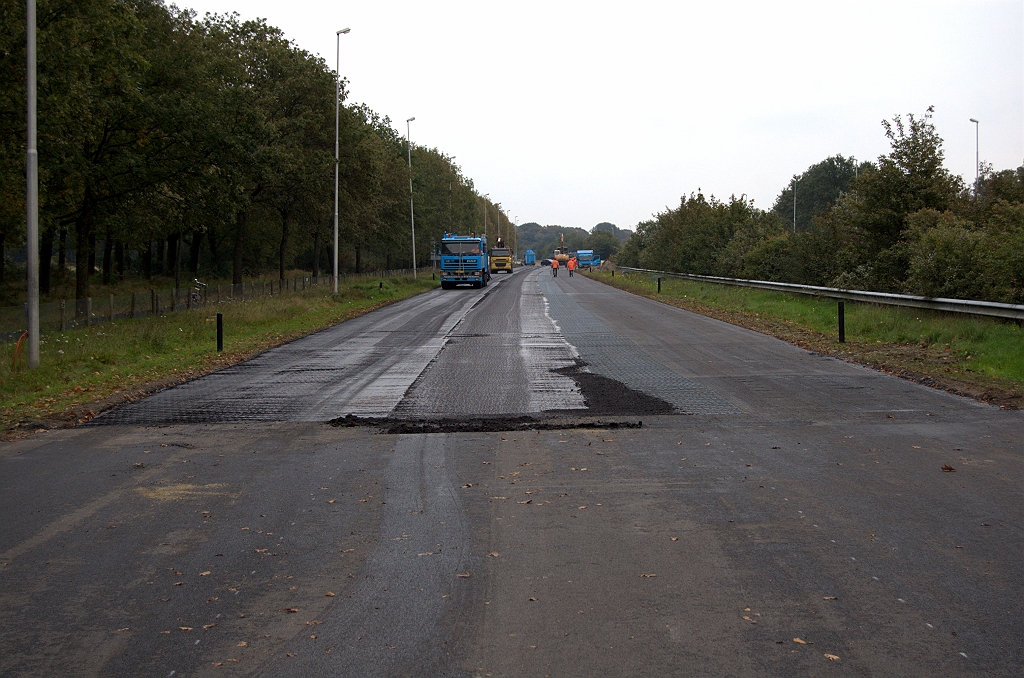 De A270 HRL bij de nieuwe overgang tussen provinciaal (voorgrond) en gemeentelijk deel. Beton in de rijbaan niet meer herkenbaar.