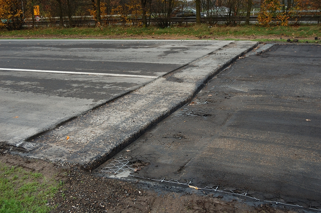 ...dat weer de overlagingsoperatie ondergaat met asfaltwapening en emulsie asfalt.