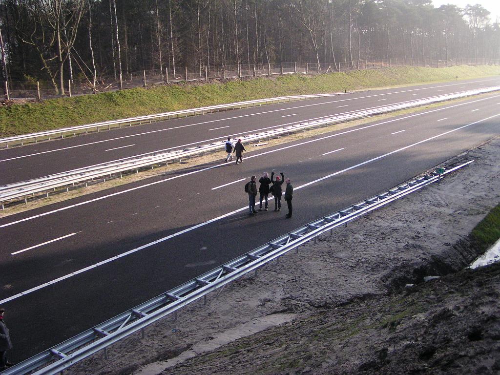 | Zicht vanaf het Schansbaan viaduct op enkele forummers. |