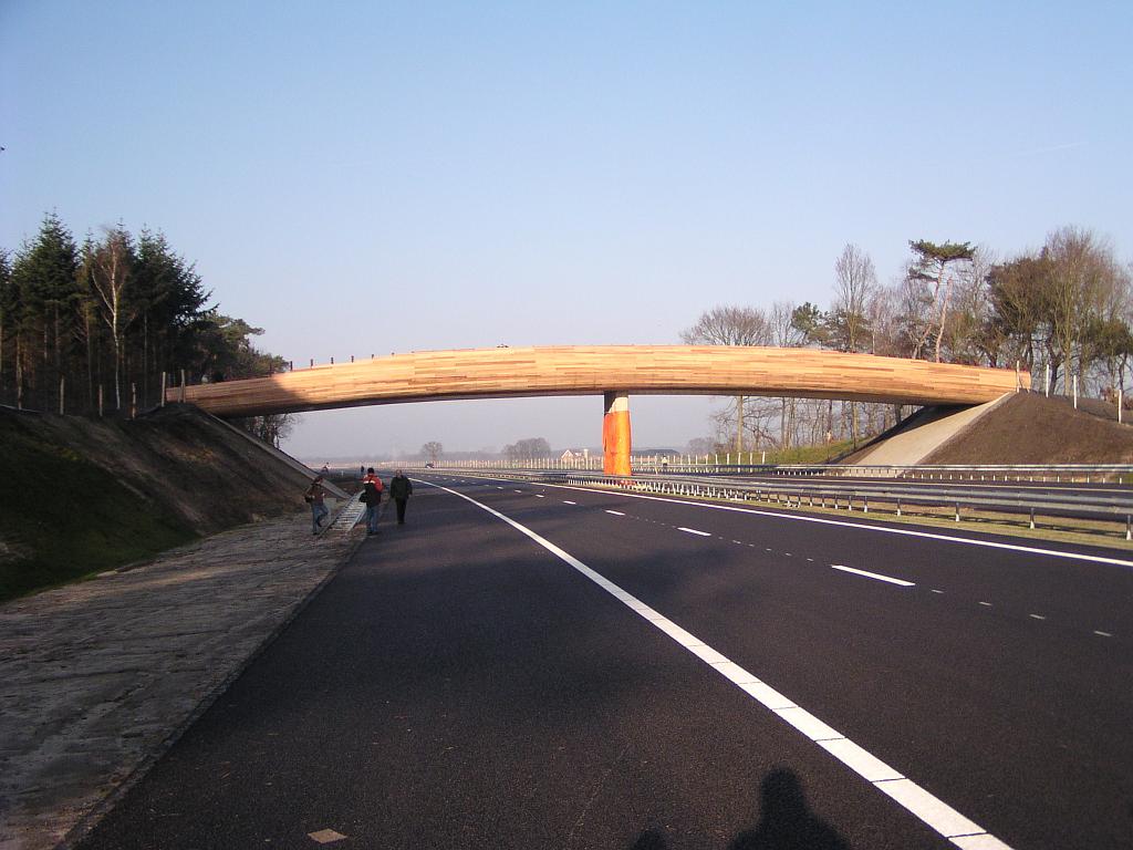 | Zo wordt in de moderne snelwegenbouw een viaduct in de omgeving ingepast. |