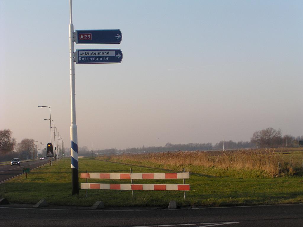 | "A4" dus "binnenkort" op deze wegwijzer. Merk op dat de grondreserving voor de N268 breed genoeg is voor 2x2. Dit gaat zo door tot de T-kruising met de N640 oostwaarts. |