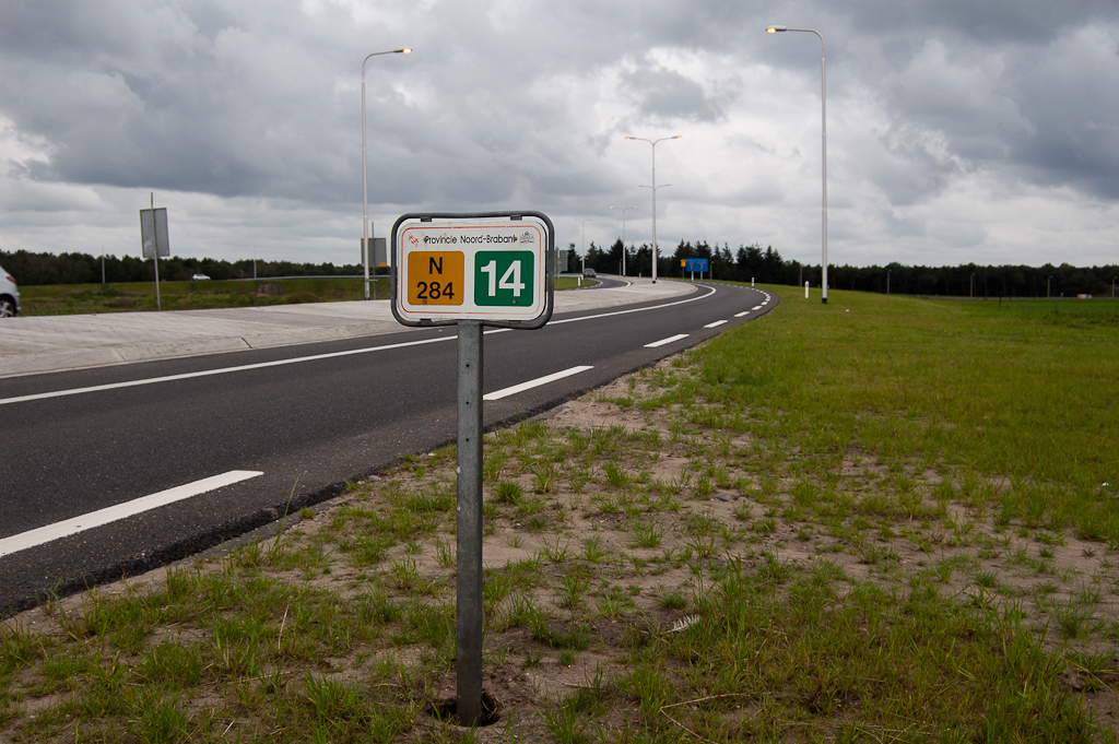 Laatste kilometerbordje rijdende naar de nieuwe aansluiting ziet er gebruikt uit.