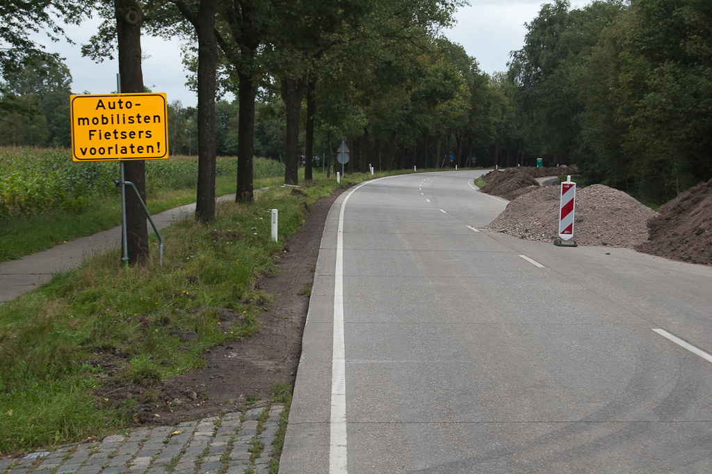Nog even goed kijken naar de oude betonnen rijbaan voordat hij er niet meer is. Bermverharding (keien vlak onder het maaiveld) reeds verwijderd.